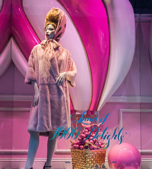 Os balões rosa destacam a vitrine, o que chama a atenção do público alvo.
